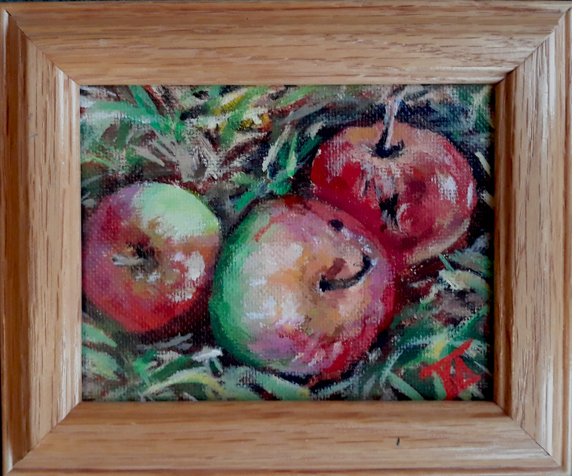 4″ x 5″ acrylic on canvas panel, oak frame included